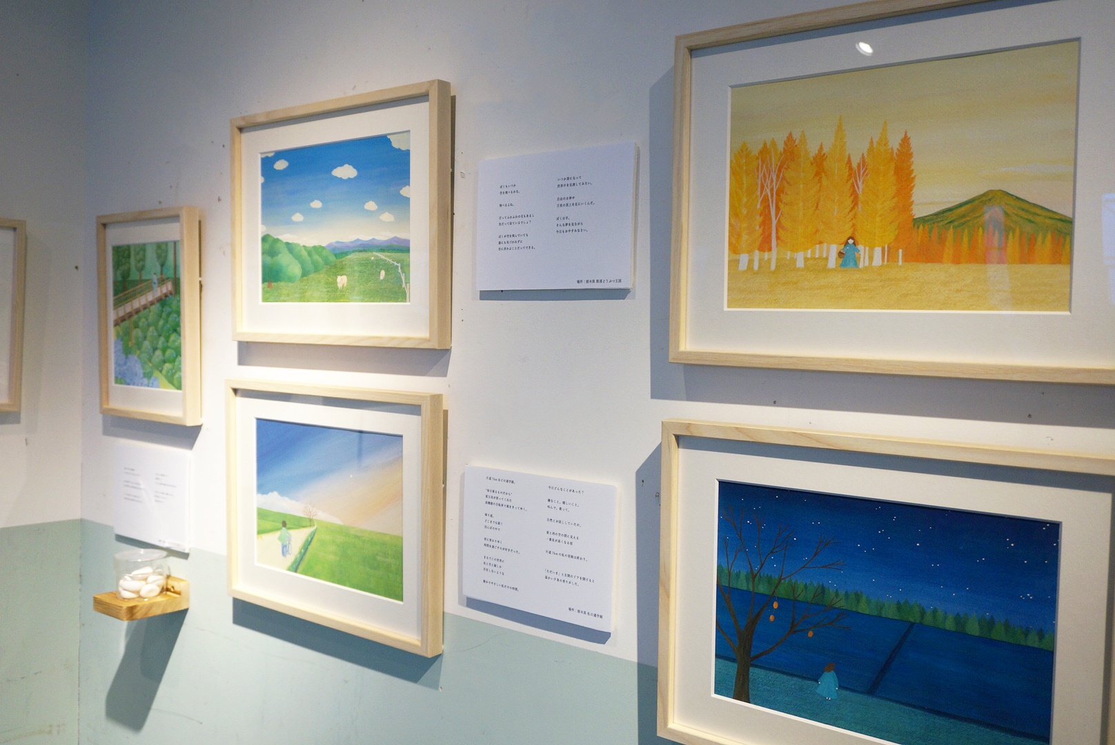 内容: 絵のROOTSとなっている 栃木の風景と 心に寄り添う詩を並べて展示しました。無料で参加できるワークショップも企画しました。